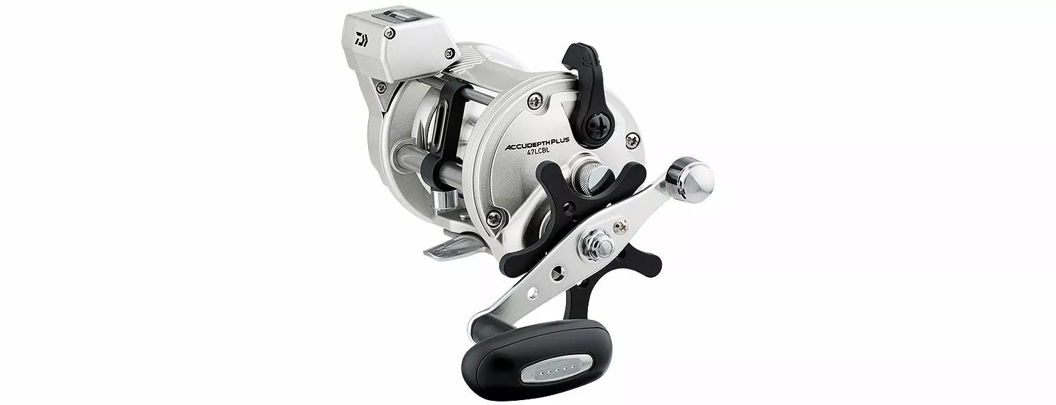 The Daiwa® AccuDepth® Plus-B Line Counter Reels have a direct-drive, built-in line counter that measures line in feet. The one-piece composite frame construction is lightweight and durable with a counter balanced handle and machine-cut brass gears for cranking power. The smooth, Teflon® impregnated felt drag, auto-engaged clutch and spool clicker make the Accupdepth® a fantastic pick for fishermen.